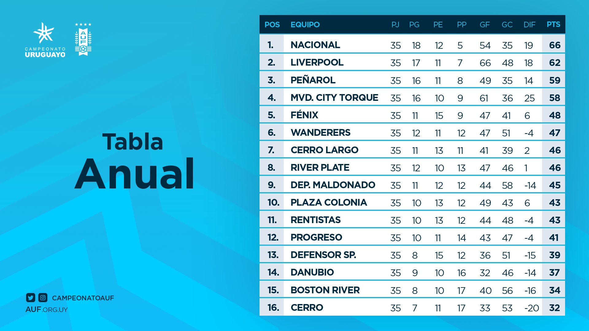 Campeonato Uruguayo On Twitter Asi Estan Las Posiciones En La Tabla Anual Campeonatouruguayo